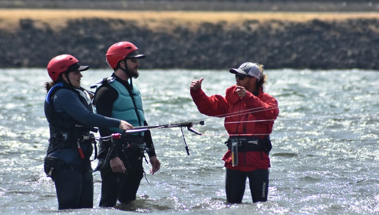 Explore kiteboarding and wing foiling with certified experienced instructors in the stunning Columbia River Gorge in Lyle WA